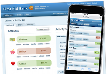 Make deposits & withdraws and track chore progress from your computer or mobile phone.